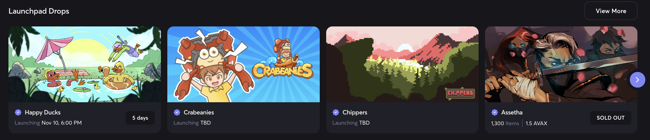 For more information on launchpad projects select the relevant cell or 'View more' to go to the Mint page.