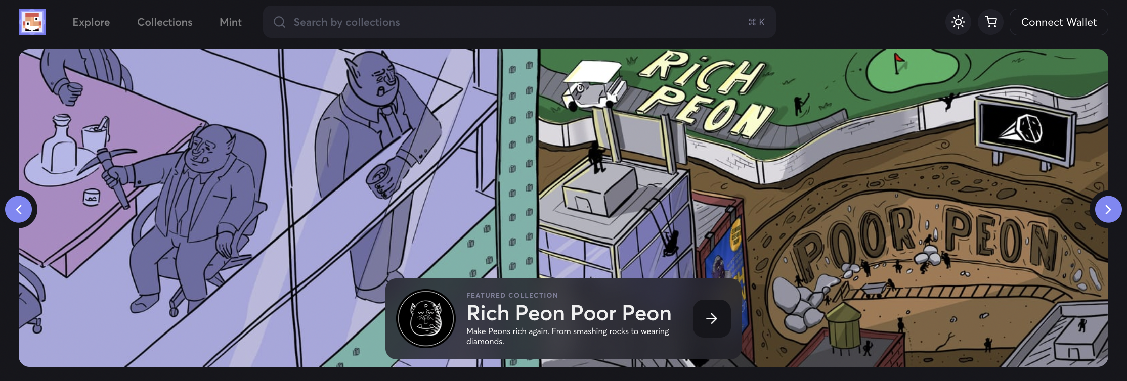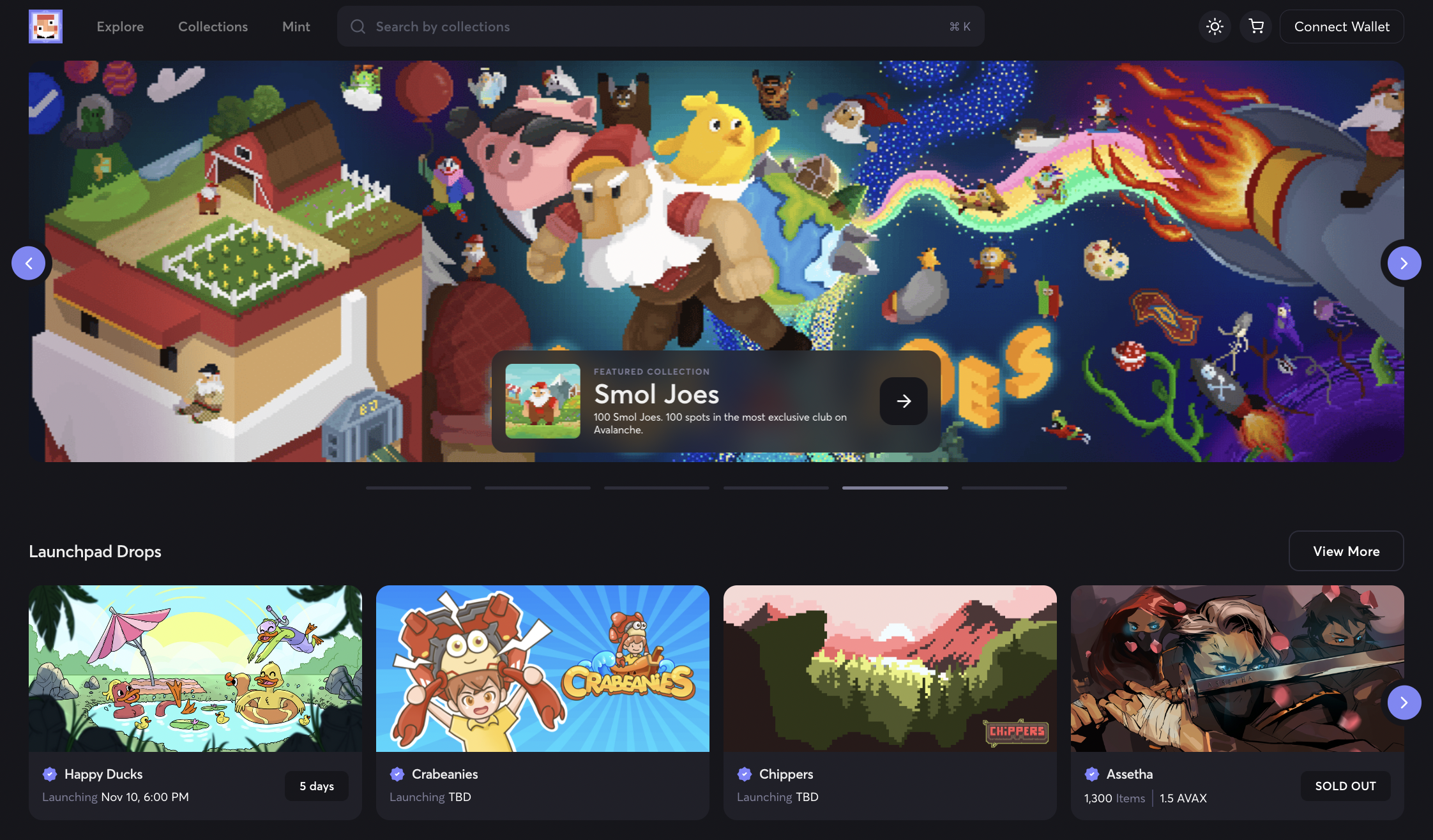 The carousel banner at the top of Joepegs Homepage is a great place to discover popular collections on Avalanche. This section is updated regularly to ensure collection suggestions are relevant.