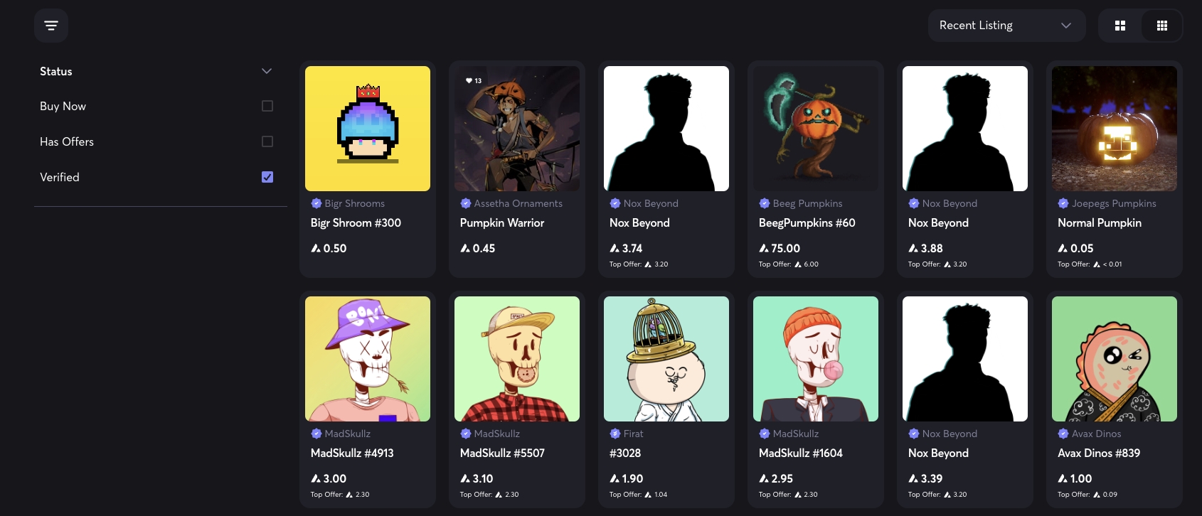 Recent Listings: Individual NFTs that have been recently put up for sale