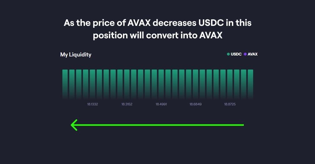 EG if you have 100 USDC you want to trade that for eg AVAX, you can deposit your 100 USDC and if the market moves in your favor, in this case if the price of AVAX falls relative to USDC, your USDC will convert into AVAX tokens.